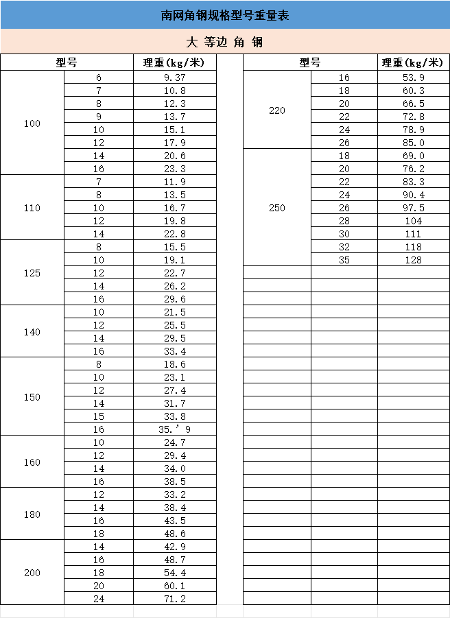 在表格中,我們可以看到不同規(guī)格的角鋼重量,這是為了幫助工程師計(jì)算整個(gè)結(jié)構(gòu)的負(fù)載。誤差的存在可能會(huì)導(dǎo)致結(jié)構(gòu)不穩(wěn)定,甚至崩塌。