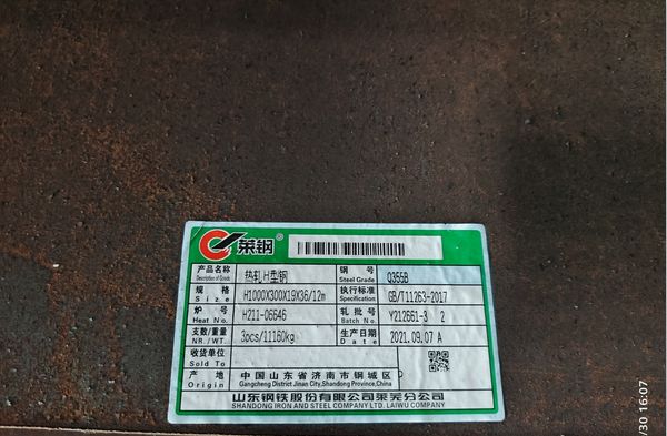 2022年1月3日,浙江蘇滬金屬制品有限公司新貨入庫H型鋼1000*300*19*36,產地【萊鋼】。